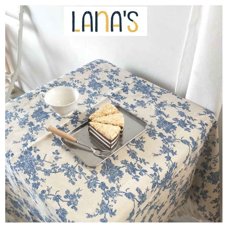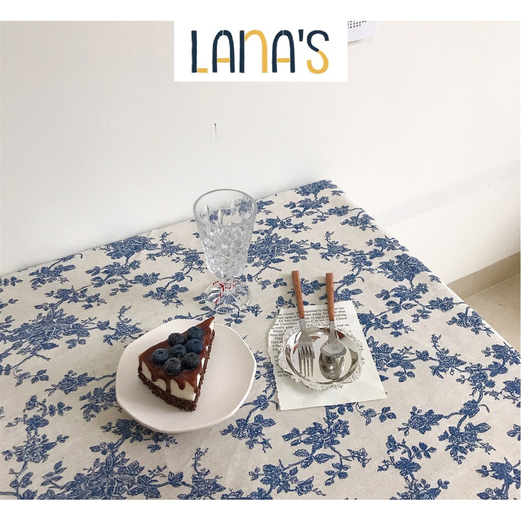 "LANA'S STORE nhận may khăn trải bàn, đồ decor họa tiết theo theo yêu cầu"KHĂN TRẢI BÀN VẢI BỐ CANVAS DECOR HỌA TIẾT HOA XANH VINTAGE