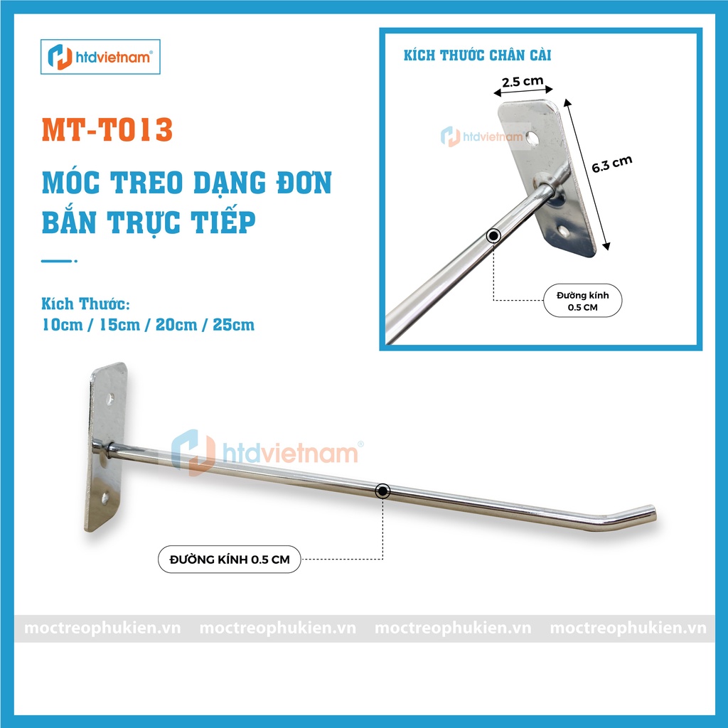 - Móc treo phụ kiện MT-T013 có thể bắt trực tiếp vào tường hoặc tủ gỗ.