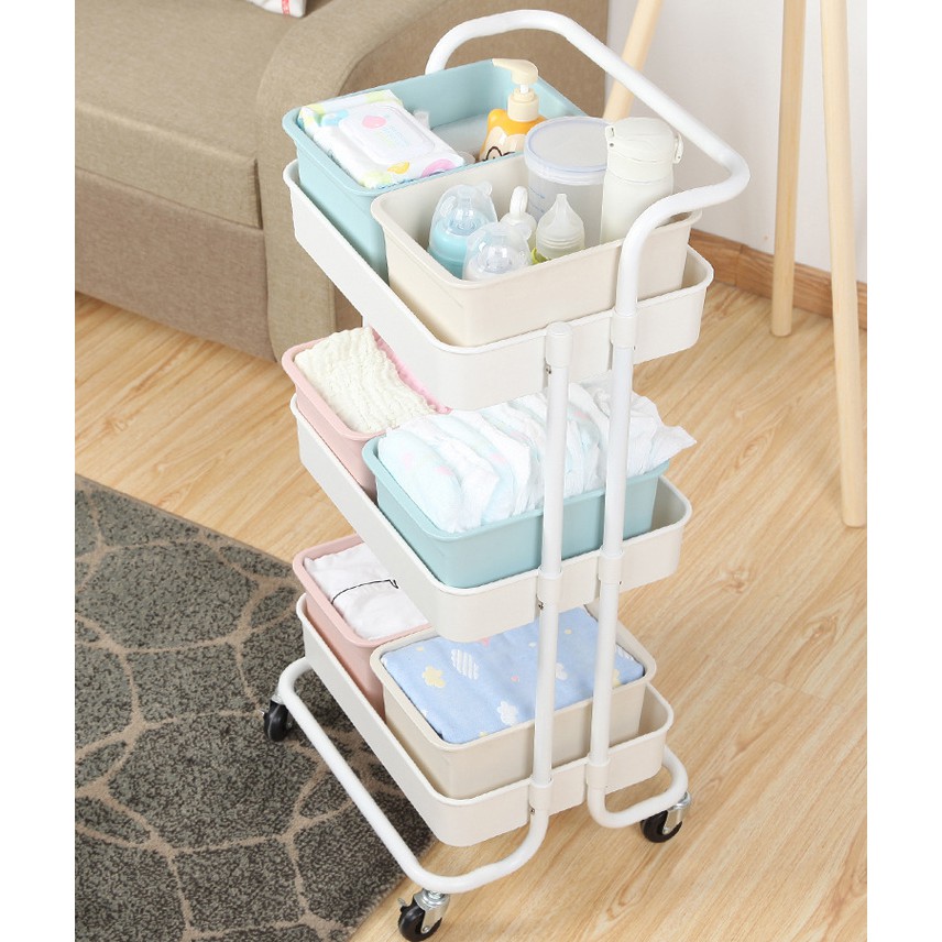 Kệ 3 tầng, kệ nhựa ba tầng bỉm sữa có bánh xe nhập khẩu