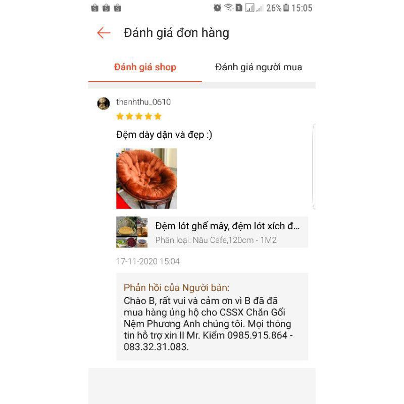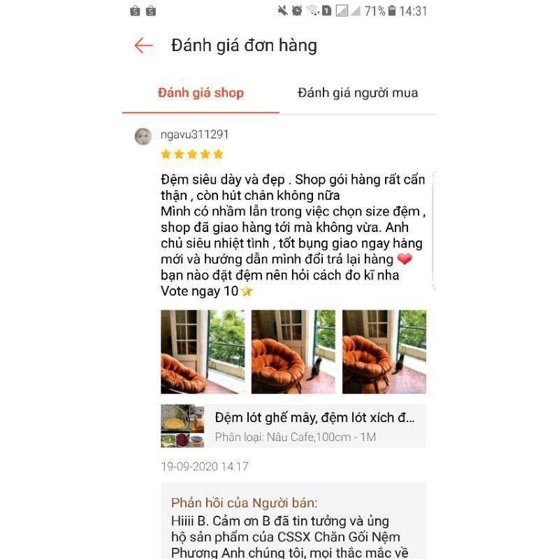 Nhà cửa & Đời sống > Nội thất > Đệm ngồi || Đệm lót ghế mây, đệm lót xích đu Papasan loại 1M, 1M2Còn hàng