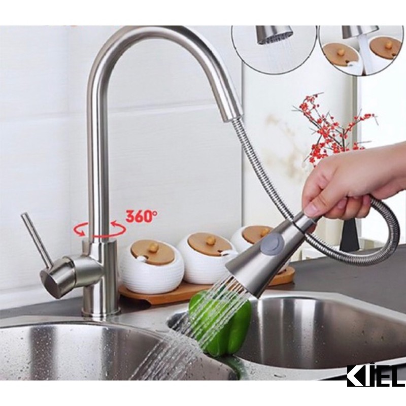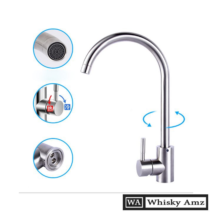 - Vòi inox 304 nóng lạnh xoay 360 độ ( Inox mờ chống bám và hoen gỉ)