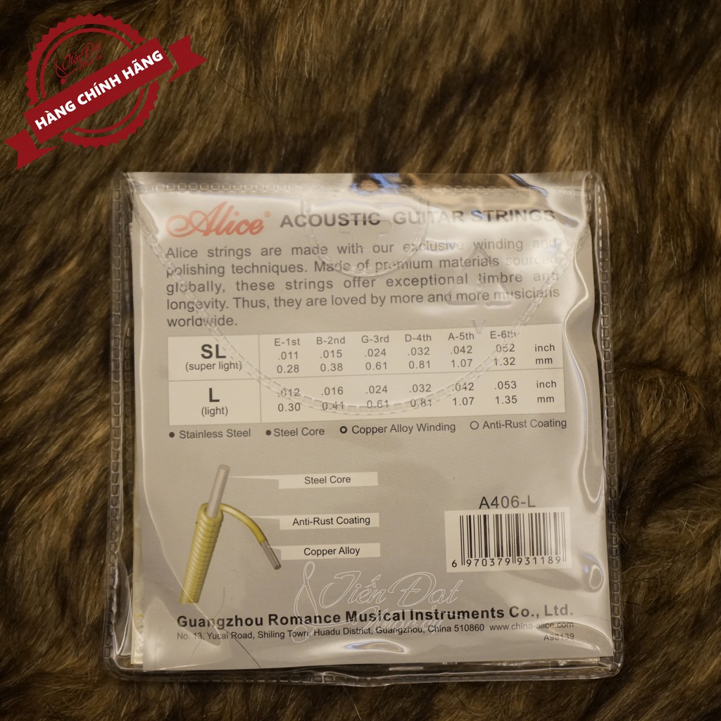 Dây đàn guitar Alice A406 của hãng Alice dùng chuyên cho dòng đàn Acoustic, màu vàng, chất âm trong và vang, độ bền của dây tốt, lâu rỉ sét, giá thành rẻ