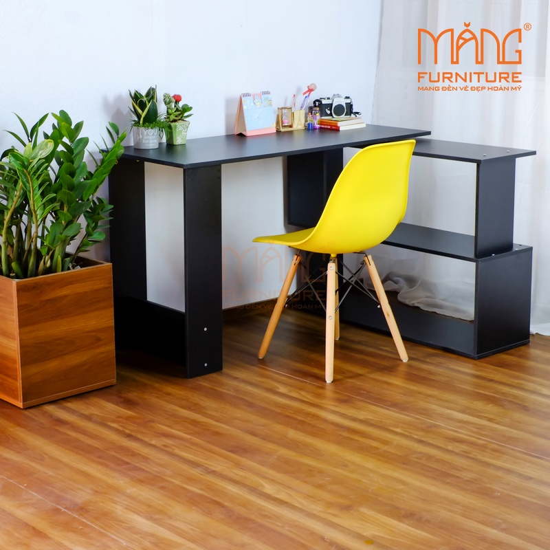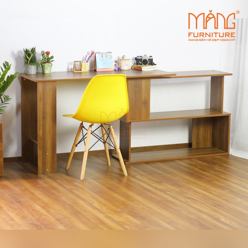 Bàn làm việc gỗ MDF xoay 360 độ tinh tế - Bàn học có giá sách cỡ lớn hiện đại BLV12