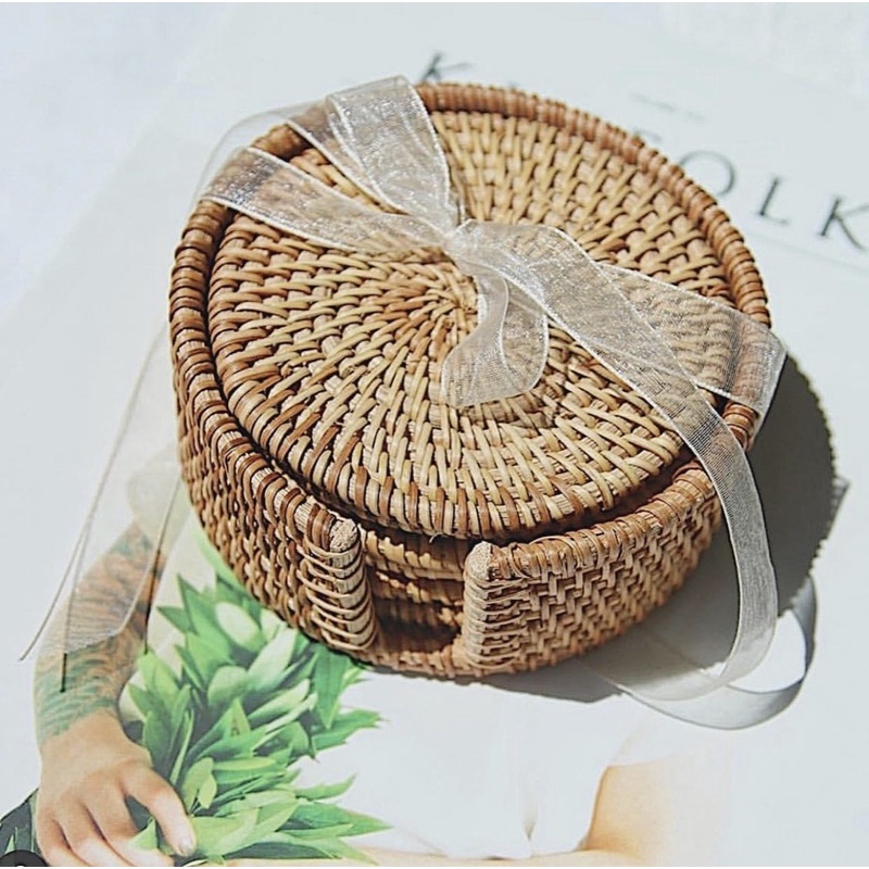 Nhà cửa & Đời sống > Bộ đồ bàn ăn > Khay, tấm lót bàn ăn || [SẴN-RẺ]ĐẾ COASTER LÓT LY CỐC BẰNG MÂY ĐAN THỦ CÔNGCòn hàng