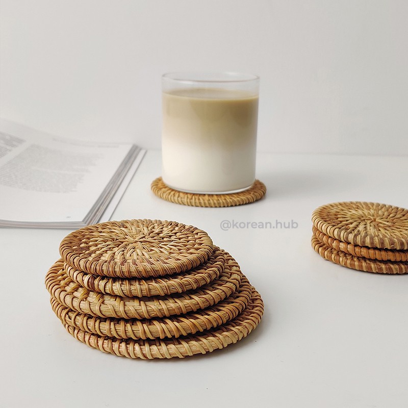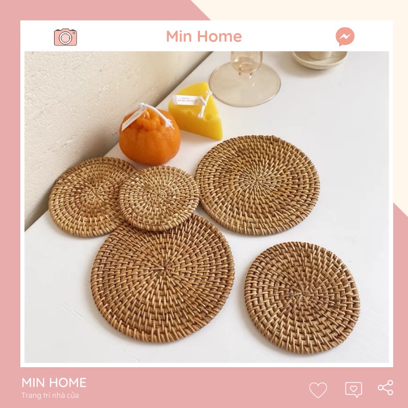 ĐẾ COASTER LÓT LY CỐC BẰNG MÂY ĐAN THỦ CÔNGĐế lót ly cốc được đan thủ công bằng mây. Lót ly cốc thủy tinh hay ly sứ đều xinh hết ạ.