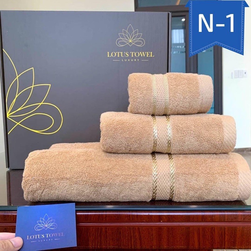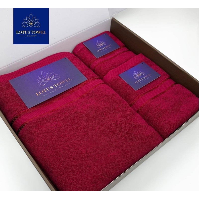 - Set gồm 3 khăn Cotton full hộp sang trọng - LotusTowel