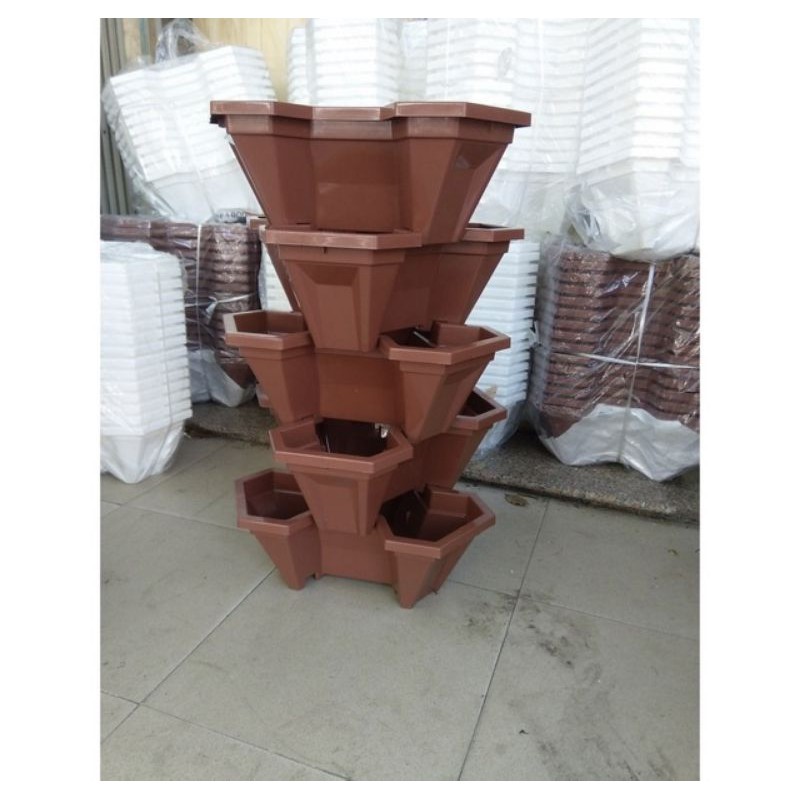 - chậu trồng xếp tầng nên tiết kiệm diện tích, phù hợp trồng rau ăn lá, hoa các loại