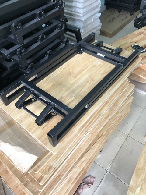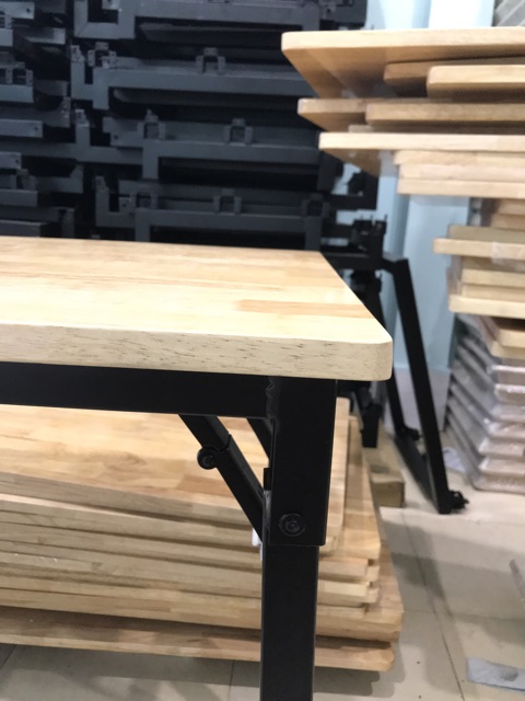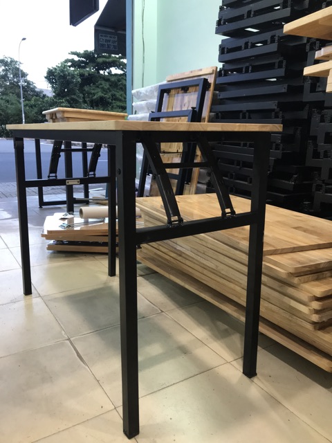 - Chân bàn Thiết kế lò xo xếp gọn, làm từ sắt vuông 3cm, đảm bảo cho Bàn chắc chắn.Chân bàn sơn đen tĩnh điện rất đẹp hạn chế tối đa việc tróc sơn vì đặc tính ưu việt của Sơn Tĩnh Điện.
