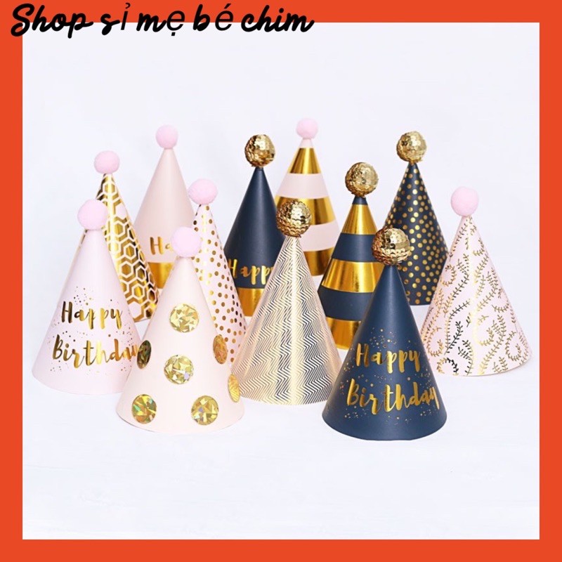 Mũ sinh nhật nhiều mẫu như hình cho khách chọn. Ngoài ra shop còn bán nhiều phụ kiện sinh nhật với giá rẻ tha hồ cho mẹ chọn lựa