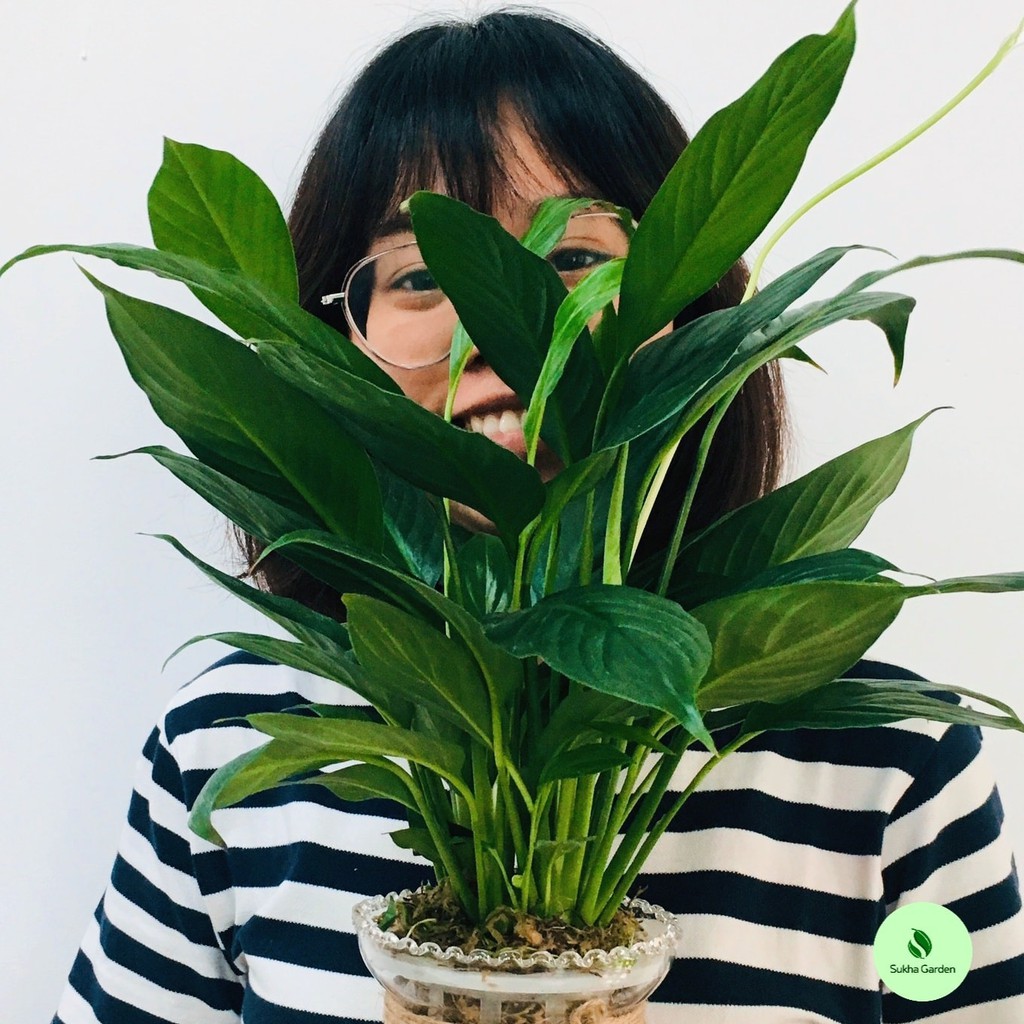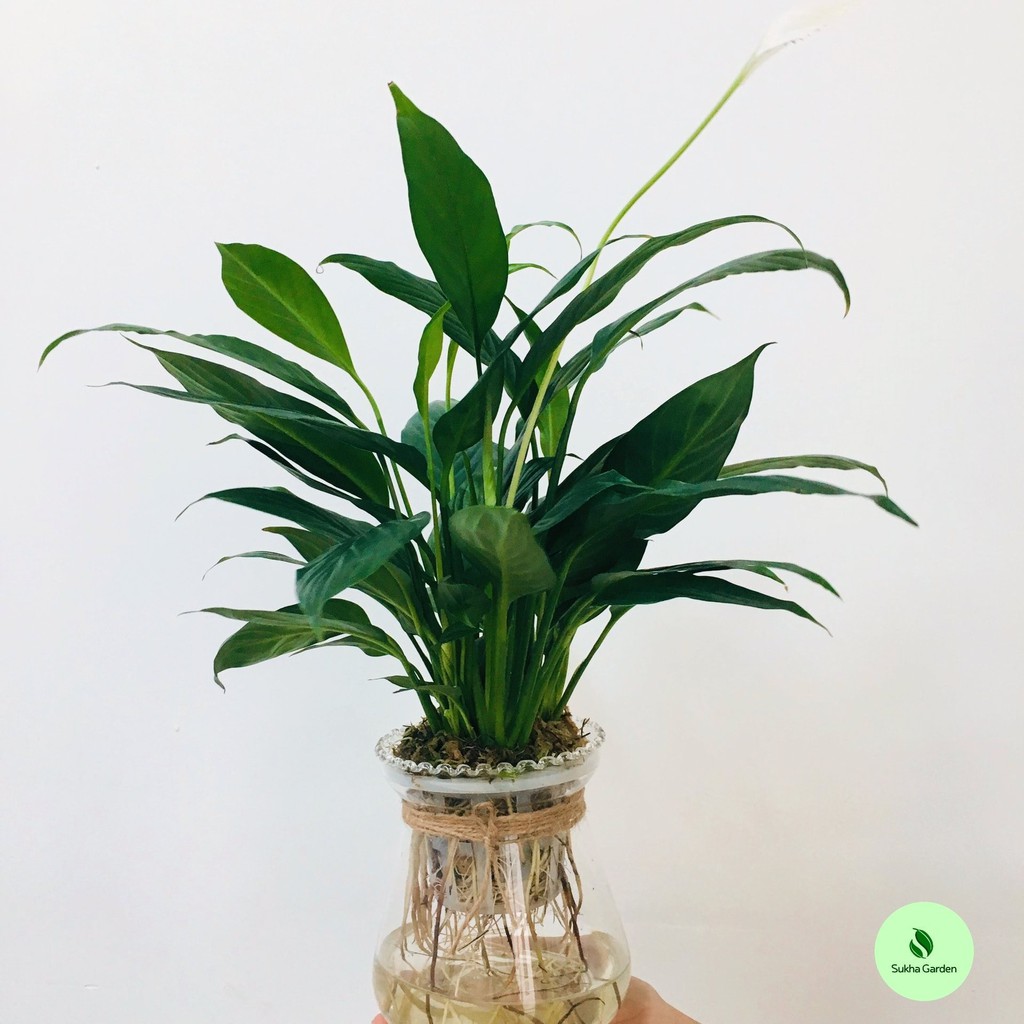 Nhà cửa & Đời sống > Làm vườn > Cây cảnh || Cây Lan Ý thủy sinh để bàn chậu thủy tinhCòn hàng