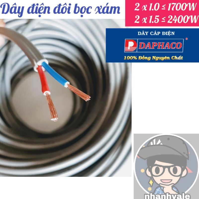 [DAPHACO] Dây Điện Đôi - Lẻ 01 Mét Dây Pha Tròn Xám 2 Lớp Vỏ Bọc PVC- Dây điện đôi Daphaco (dây pha mềm 2 lõi đồng 2 lớp PVC cách điện rất an toàn )