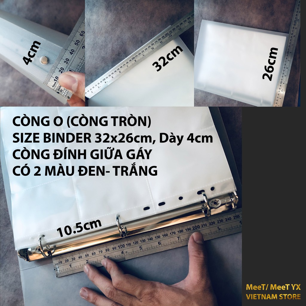 Bìa còng O, Có Màu TRẮNG và ĐEN, Size 26x32cm, Còng TRÒN 3cm, Còng được gắng VÀO GÁY (Đựng được ít sheet hơn)