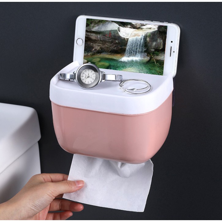 Hộp đựng giấy dán tường có giá đỡ điện thoại ( kèm theo miếng dán chịu lực)