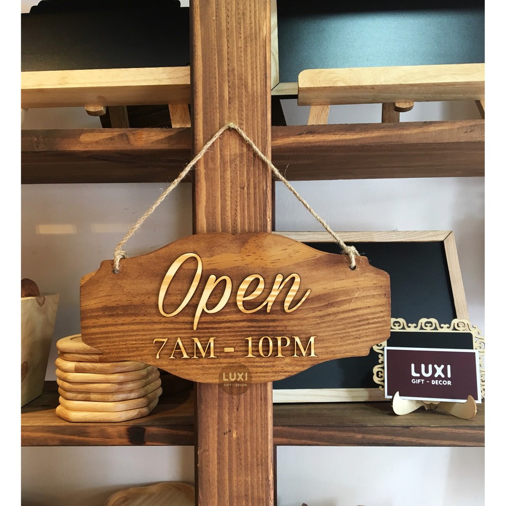 Nhà cửa & Đời sống > Dụng cụ & Thiết bị tiện ích > Cửa & cửa sổ || Bảng gỗ treo cửa 2 mặt Open-Closed(7am-10pm)Còn hàng