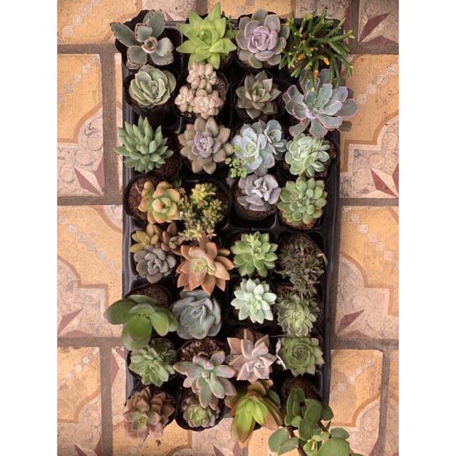 Mỗi combo bao gồm 32 bọc sen đá khác loại nhau , ngẫu nhiên không chọnTất cả đều là bầu đất size nhỏ 7x7cm, kích thước cây từ 4-8cm tùy bọc