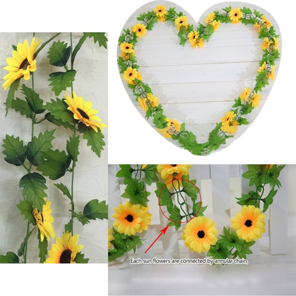 Dây hoa hướng dương giả trang trí nhà cửa. Với ý nghĩa đem lại may mắn tình yêu và sự thịnh vượng, hoa hướng dương được yêu thích sử dụng trong trang trí nội thất xua tan không gian buồn tẻThông tin sản phẩm:
