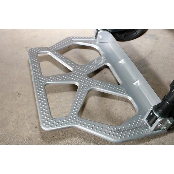 Khung của Thang nhôm kết hợp xe đẩy hàng đa năng làm từ chất liệu thép định hình, vừng chắc. Cùng các bậc thang nhôm nhám bám chắc chân.