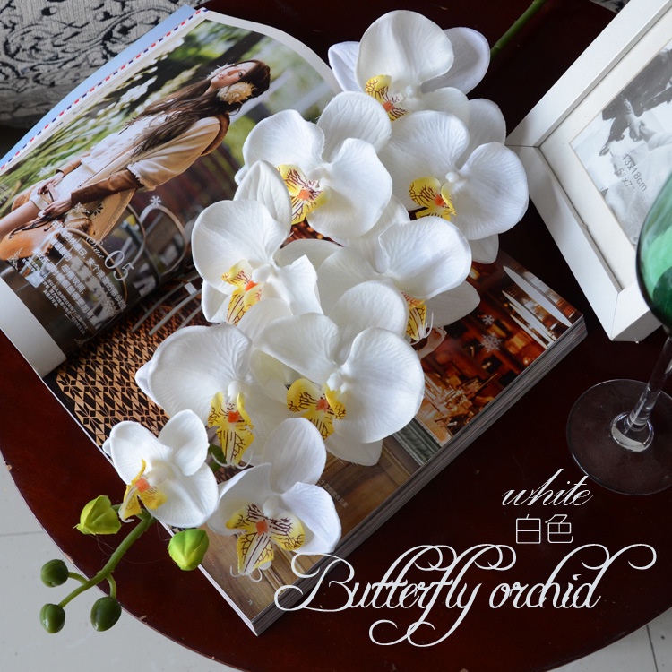 Hoa giả, cành hoa lan hồ điệp cao su 7 - 9 bông cỡ lớn trang trí sang trọng HD-79