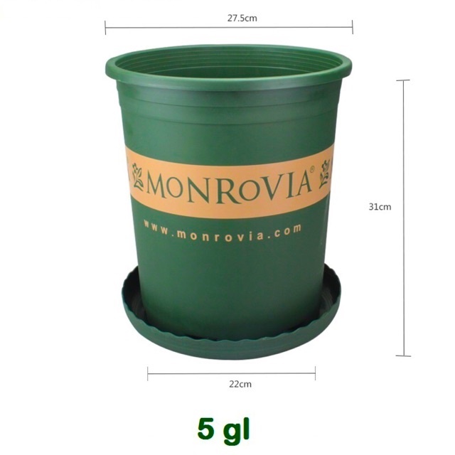 Combo Bộ Chậu MONROVIA 5 Gallon hàng nhập + Đĩa Lót (28x31x22)