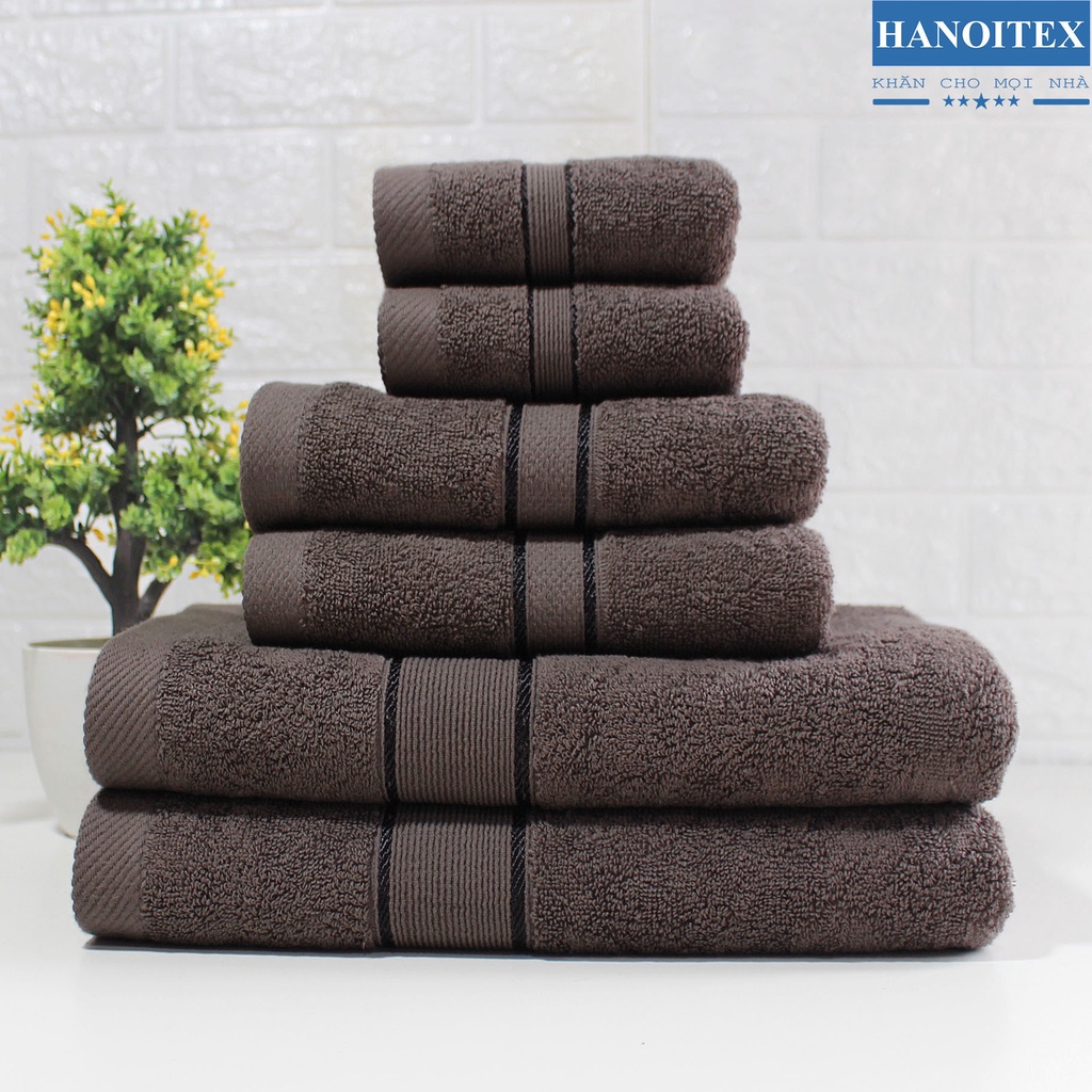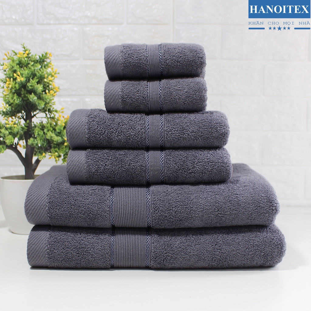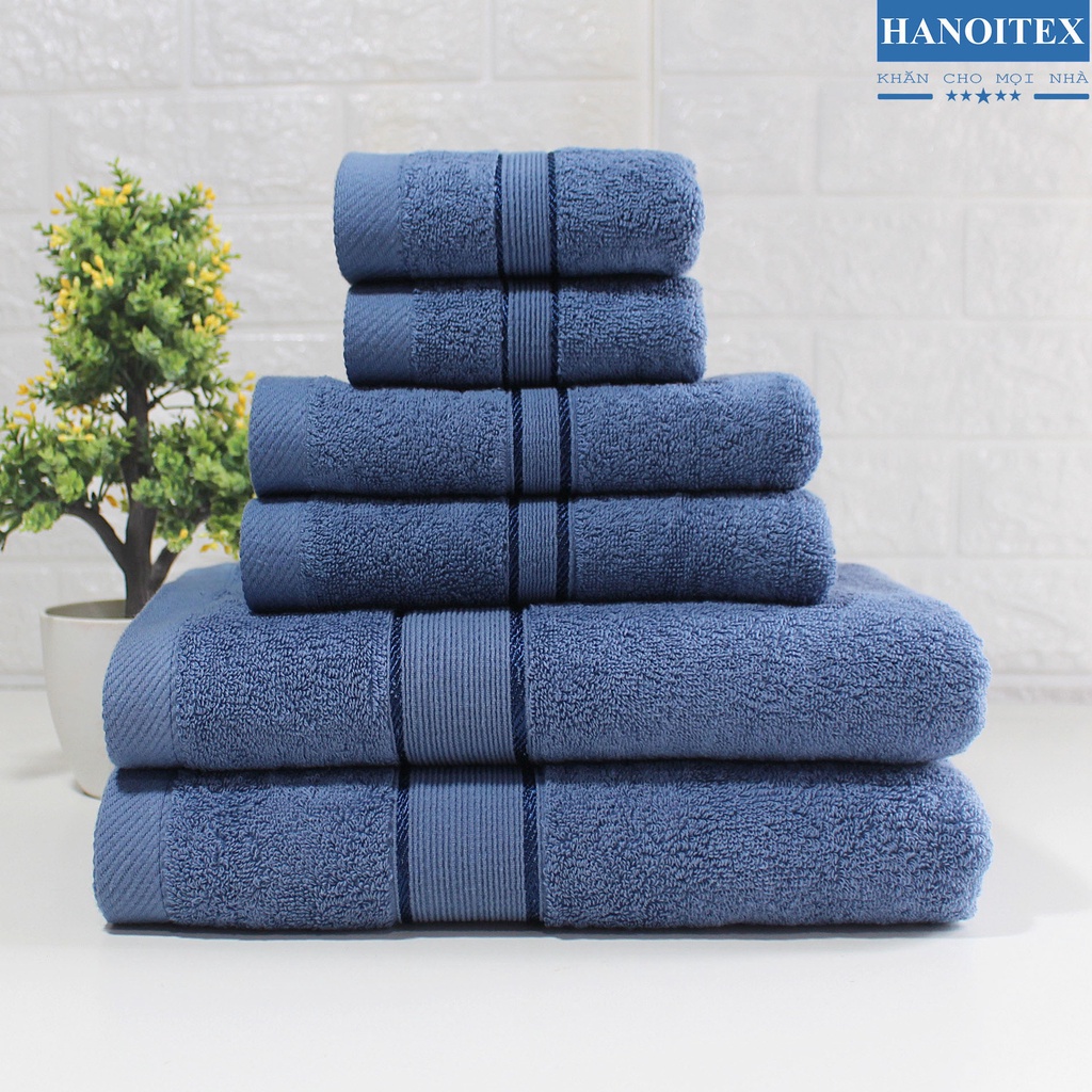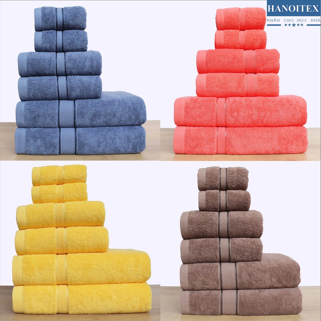 Bộ 6 khăn cotton cao cấp dày dặn thấm hút tốt không phai màu_Khăn tắm Hanoitex