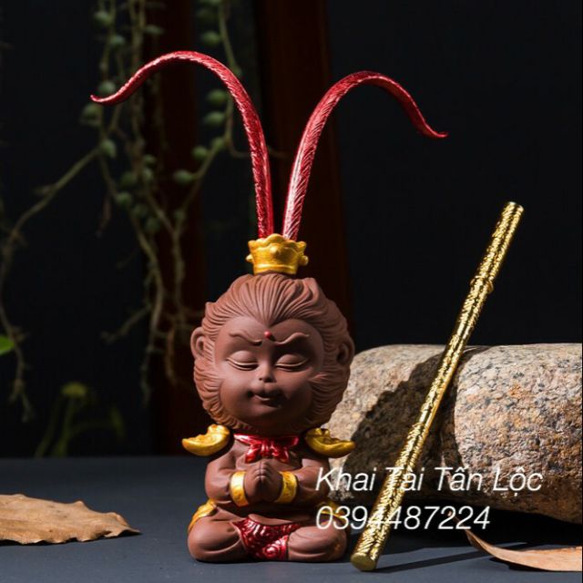Nhà cửa & Đời sống > Trang trí nhà cửa > Khác || Tượng Tôn Ngộ Không râu thẳng gốm tử sa kèm gậy như ýCòn hàng