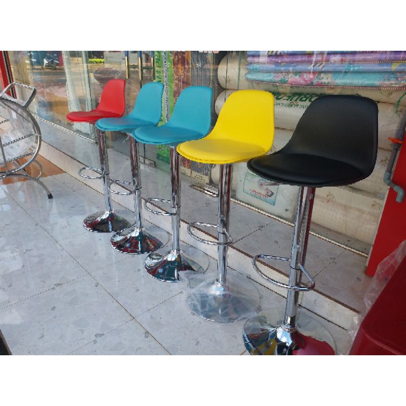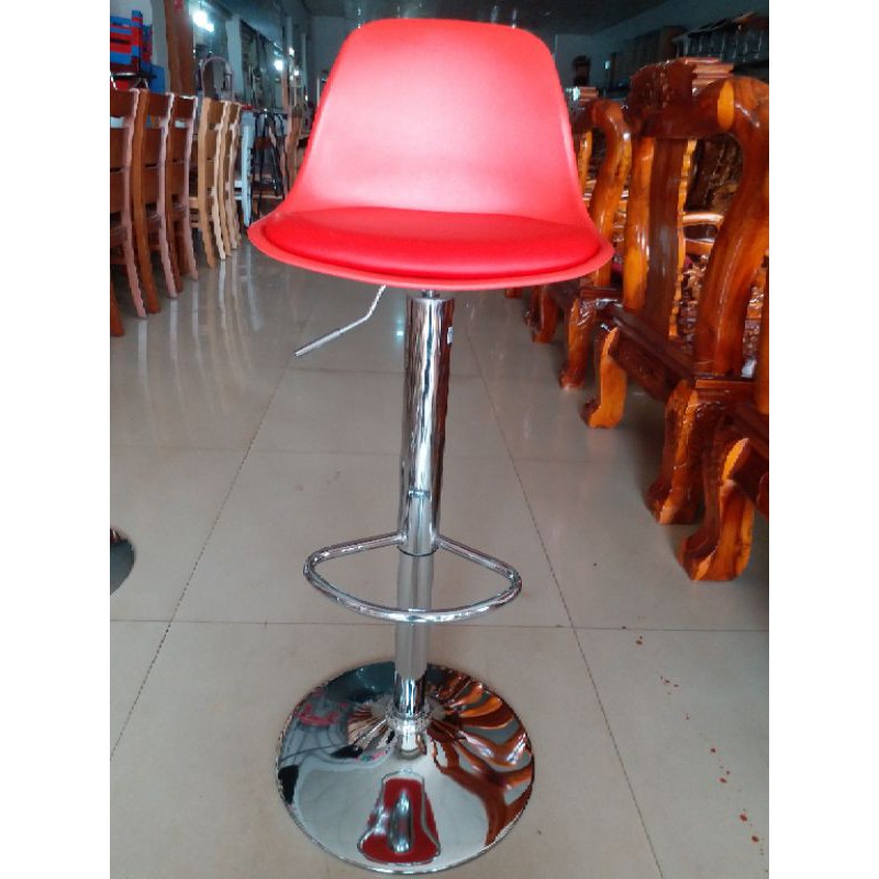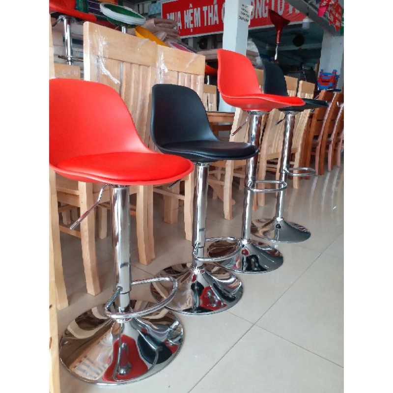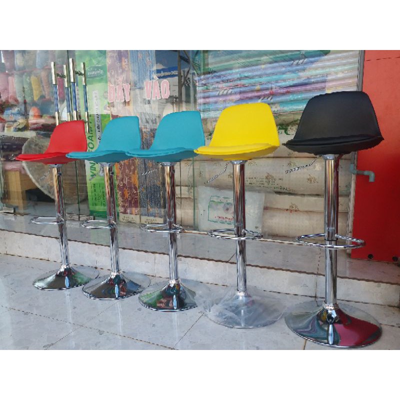 - Ghế quầy bar chân thép mạ, đệm nhựa bọc nệm, có cần gạt nâng hạ chiều cao tùy ý, được sử dụng làm ghế bar, ghế cafe, ghế lễ tân khách sạn...- Kích thước: W450*D450*H840÷1040
