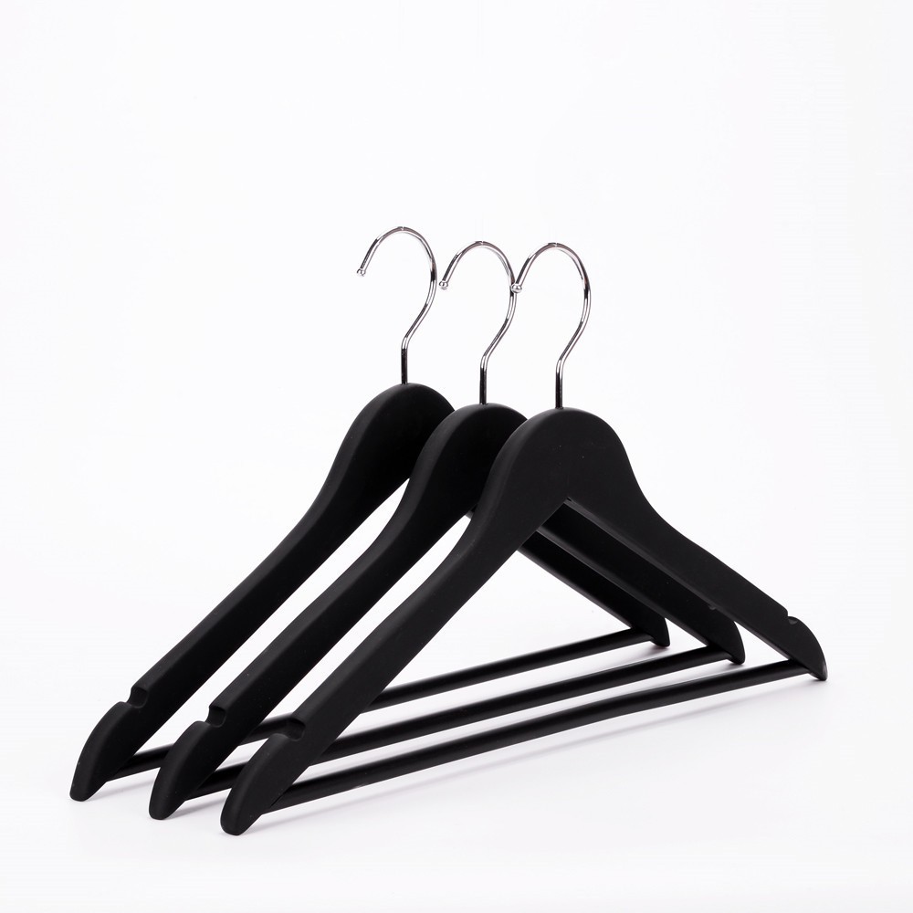 Móc gỗ thanh ngang đen treo móc quần áo người lớn trong các shop thời trang, hotel, studio,... với chất gỗ thật 100% từ tự nhiên được sơn phủ 2 lớp màu đen tạo cảm giác huyền bí, sang trọng.Thông số kĩ thuật: