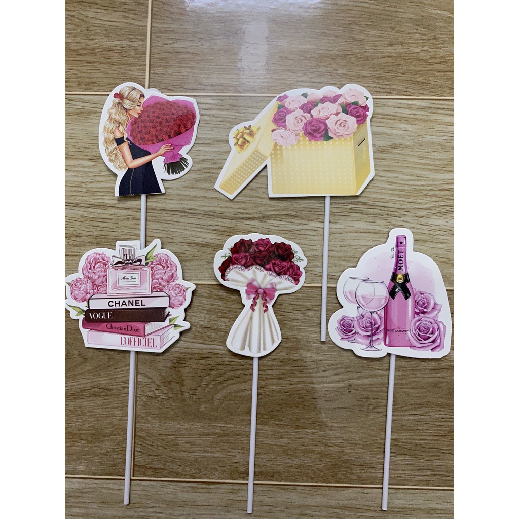 Set cắm giấy cô gái trang trí bánh sinh nhật, bánh sinh nhật, bánh gato- Mẫu : Cô gái hoa xanh, cô gái hoa hồng, cô gái hoa tím, cô gái hoa hướng dương, bộ nước hoa xe hơi