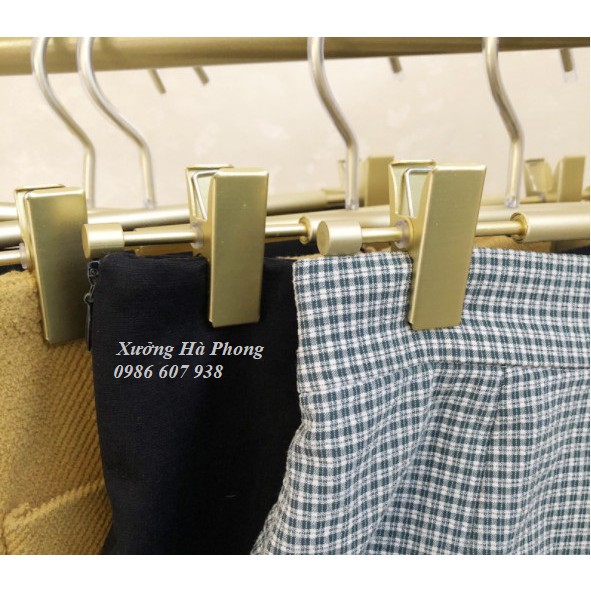 Móc treo quần áo shop, Kẹp quần nhôm mạ vàng