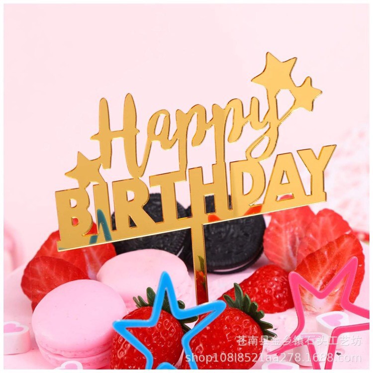 - Meka Happy Birthda trang trí bánh kem được làm bằng nhựa tráng gương cao cấp an toàn khi sử dụng