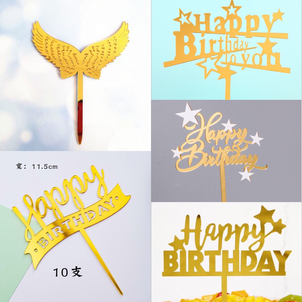 - Trang Trí Sinh Nhật - Trang trí bánh sinh nhật,bánh kem COMBO 10 MICA HPBD Vàng