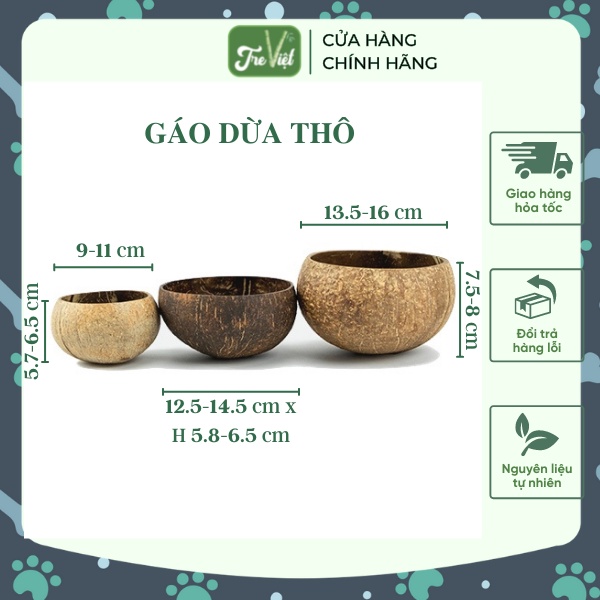 Nhà cửa & Đời sống > Dụng cụ chăm sóc nhà cửa > Chậu, xô & gáo nước || Bát gáo dừa thô – Tô gáo dừa thô mài láng mặt trong 3 kích thước | Tre ViệtCòn hàng
