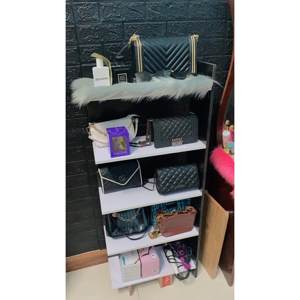 Kệ Sách FREESHIP Kệ Sách Gỗ 5 Tầng Lắp Ghép Màu Đen Trắng