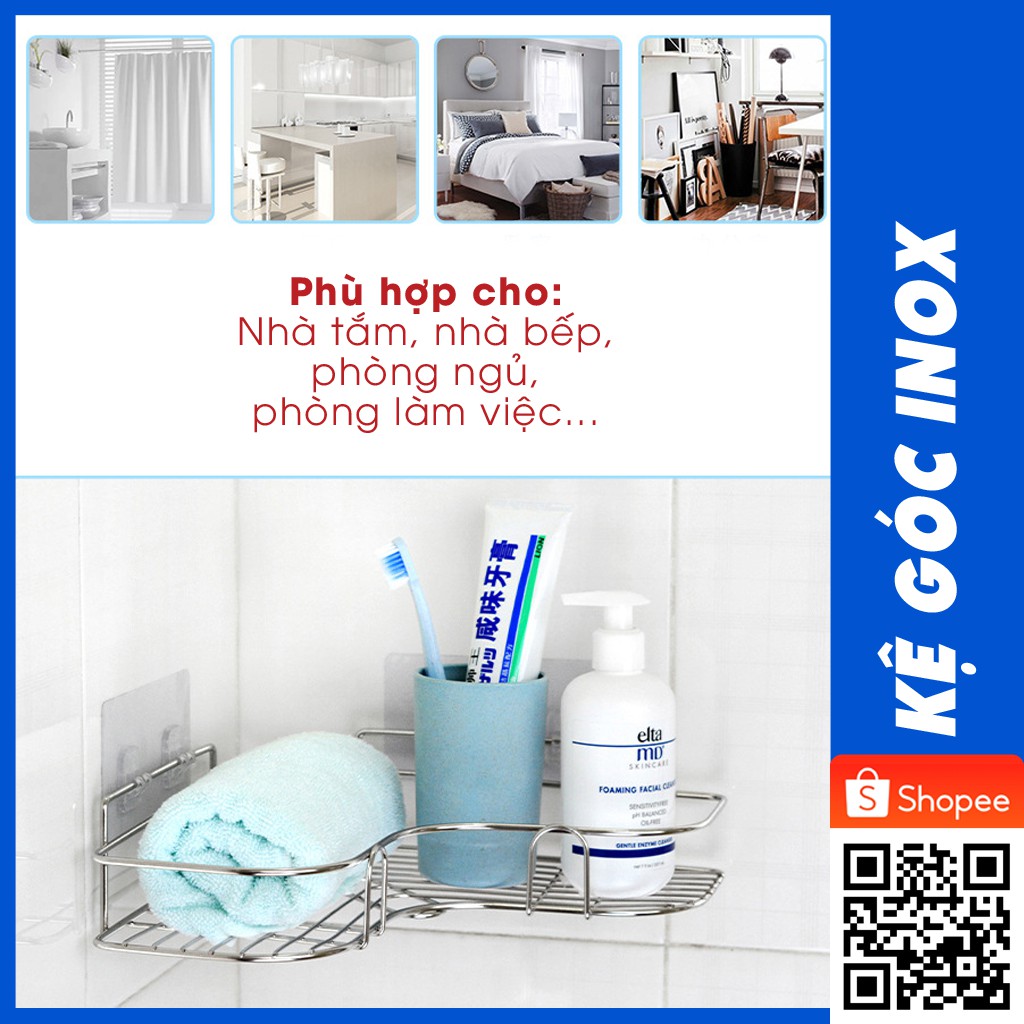 👉Kệ góc inox, giá đỡ treo dán góc tường dễ dàng lắp đặt nơi phòng tắm, phòng ngủ đựng mỹ phẩm, chai lọ gia vị trong nhà bếp (2 miếng dán 4 chỗ gài).