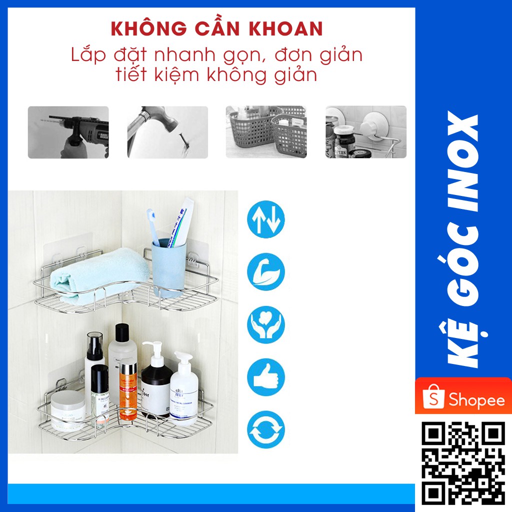 Kệ góc nhà tắm kệ để đồ phòng tắm dán tường, kệ nhà bếp tam giác inox chịu lực 10kg