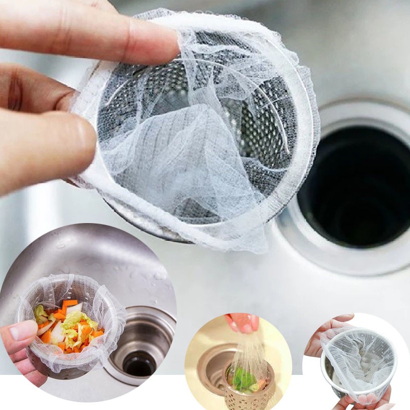 Gói 100 túi lọc rác thông minh cho bồn rửa chén– Gói 100 túi lọc rác thông minh cho bồn rửa chén với chất liệu vải lưới nhuyễn giúp thoát nước và giữ lại tất cả rác thừa lại ngăn chặn gây tắt đường nước.