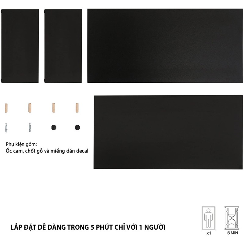 + Kết cấu: Ốc cam và chốt gỗ, vít thép tiêu chuẩn hàng xuất khẩu. Chắc chắn và thẩm mỹ.