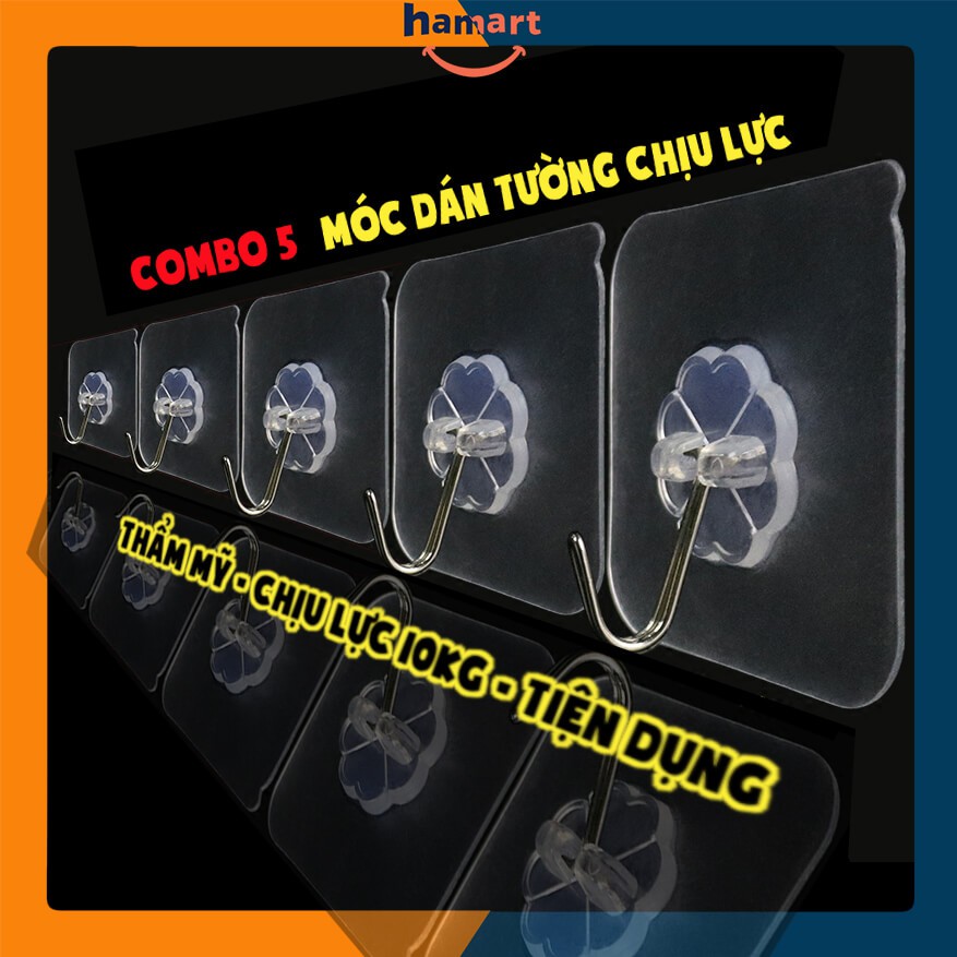 COMBO 5 Móc Dán Tường Chịu Lực Bền Đẹp Móc Dính Tường Trong Suốt Siêu Chắc Tiện Lợi