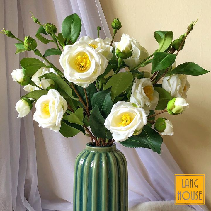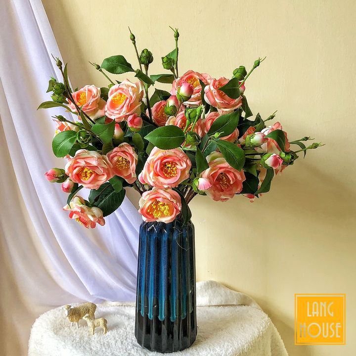Giới thiệu Hoa Giả Hoa Lụa - HOA TRÀ 1 CÀNH 2 BÔNG Loại 1
