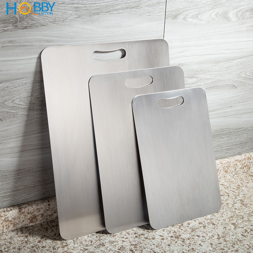 Thớt Inox 304 HOBBY TH cao cấp - 3 size tùy chọn loại dày - chống mốc, kháng khuẩn