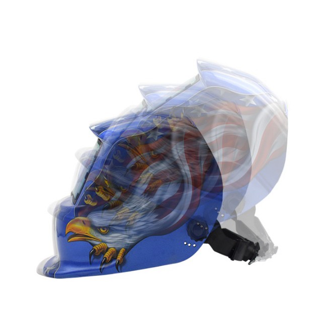 - Mũ hàn có mắt kính tự động điều chỉnh thang số lọc sáng.