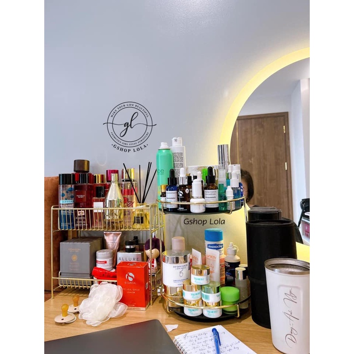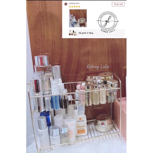 👑👑 KỆ GOLD 2 TẦNG MỚI để đồ trang điểm, đồ dùng nhà tắm đều ok👉 Em này nhỏ gọn, xinh xắn, không chiếm quá nhiều diện tích nên bày đồ mình thấy khá ổn mà để được cũng khá nhiều