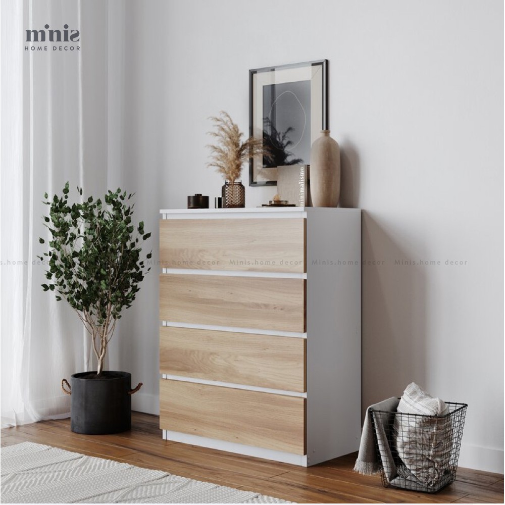 - Chiếc tủ có ngăn kéo độc lập hiện đại này là một giải pháp đầy phong cách để bổ sung thêm không gian lưu trữ cho phòng ngủ của bạn. Nó chứa 4 ngăn kéo, mỗi ngăn kéo đều có tay cầm vát 45 độ.