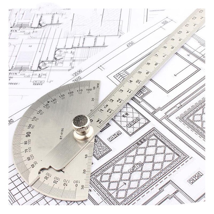 _ Thước đo góc độ ứng dụng rộng rãi trong nhiều lĩnh vực, phù hợp với nhiều đối tượng sử dụng như học sinh sinh viên, thợ mộc, kiến trúc sư, họa sĩ..._ Được chế tạo từ thép không gỉ dày 1mm, phù hợp với nhiều điều kiện môi trường làm việc, có thể đo được ở nhiều góc độ khác nhau một cách đơn giản