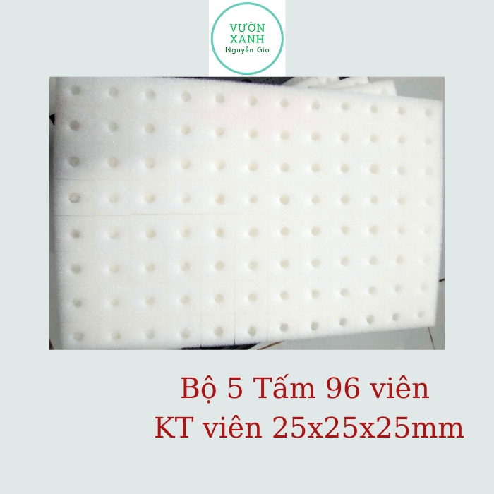 Bộ 5 Tấm Mút Thủy Canh Ươm Hạt Có Lỗ 96 Viên