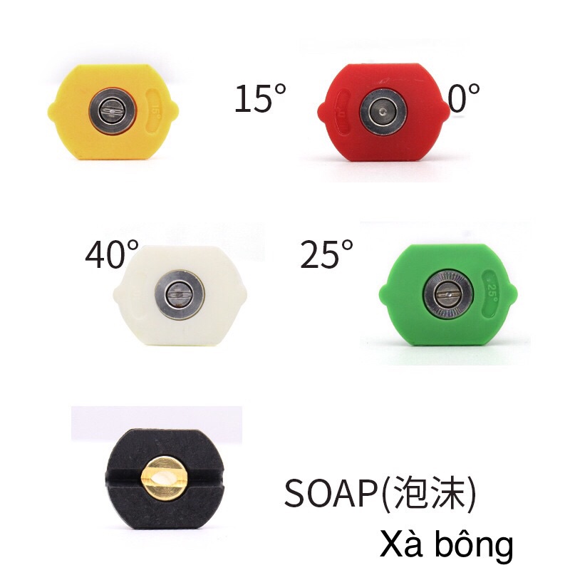 Combo bộ súng rửa xe áp lực cao kèm 5 đầu béc tiện lơi . 0 độ, 15 độ, 25 độ, 40 độ và 1 béc xà bôngGiá REAL