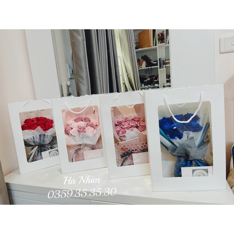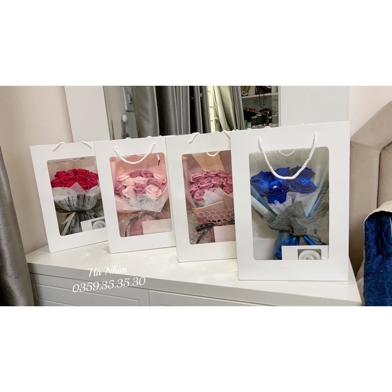 Giới thiệu Bó hoa sáp 10 bông kèm túi kính thiệp đèn