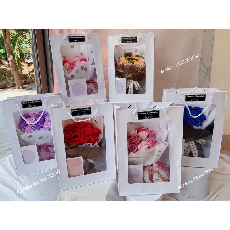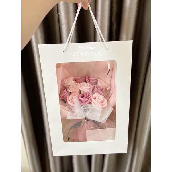 Bó hoa sáp 10 bông kèm túi kính thiệp đèn