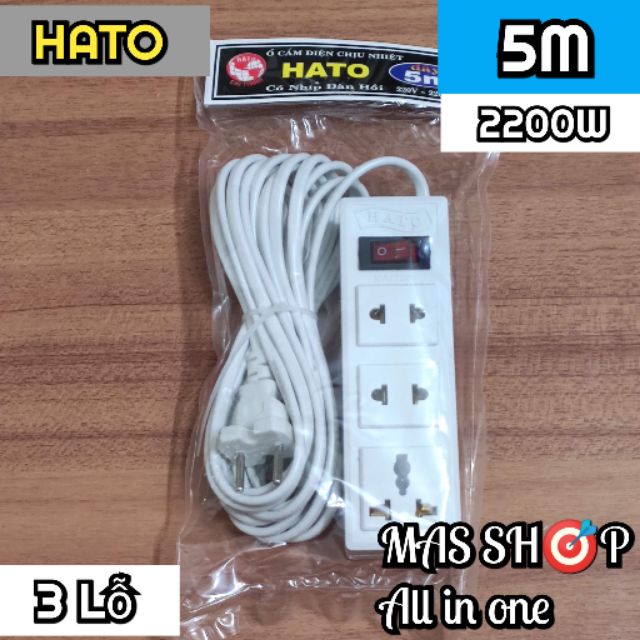 Nhà cửa & Đời sống > Dụng cụ & Thiết bị tiện ích > Dụng cụ > Khác || Ổ cắm điện 3 lỗ HATO chịu nhiệt, dây 5M, công suất 2200WCòn hàng