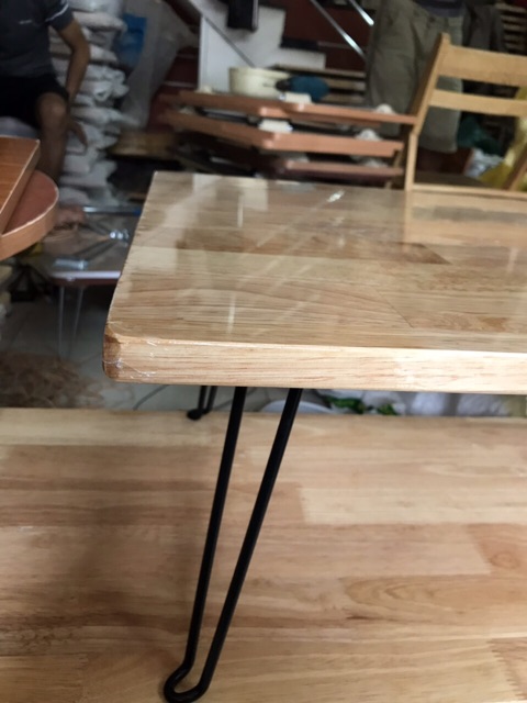 Mặt bàn: gỗ cao su tự nhiên, độ dầy 18 li phủ keo 2 mặt, chà mịn các cạnh viền.